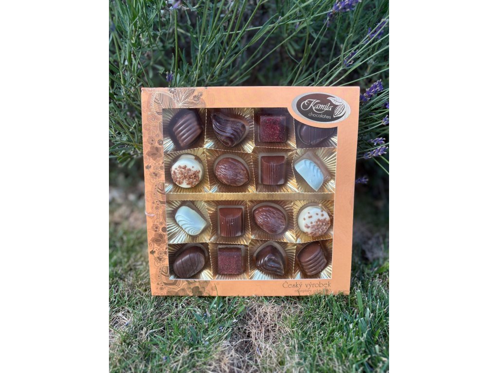 Krásný doplněk k Vaší květině, čokoládové pralinky ve velkém provedení provedení, barva balení lososová, český výrobek.