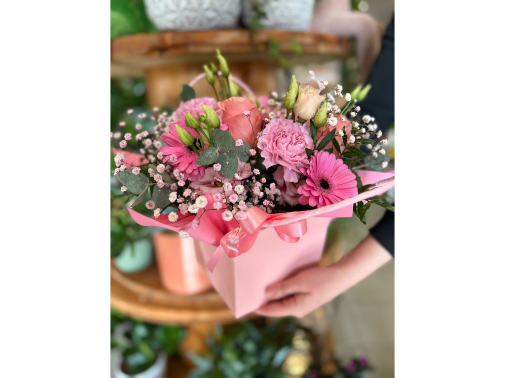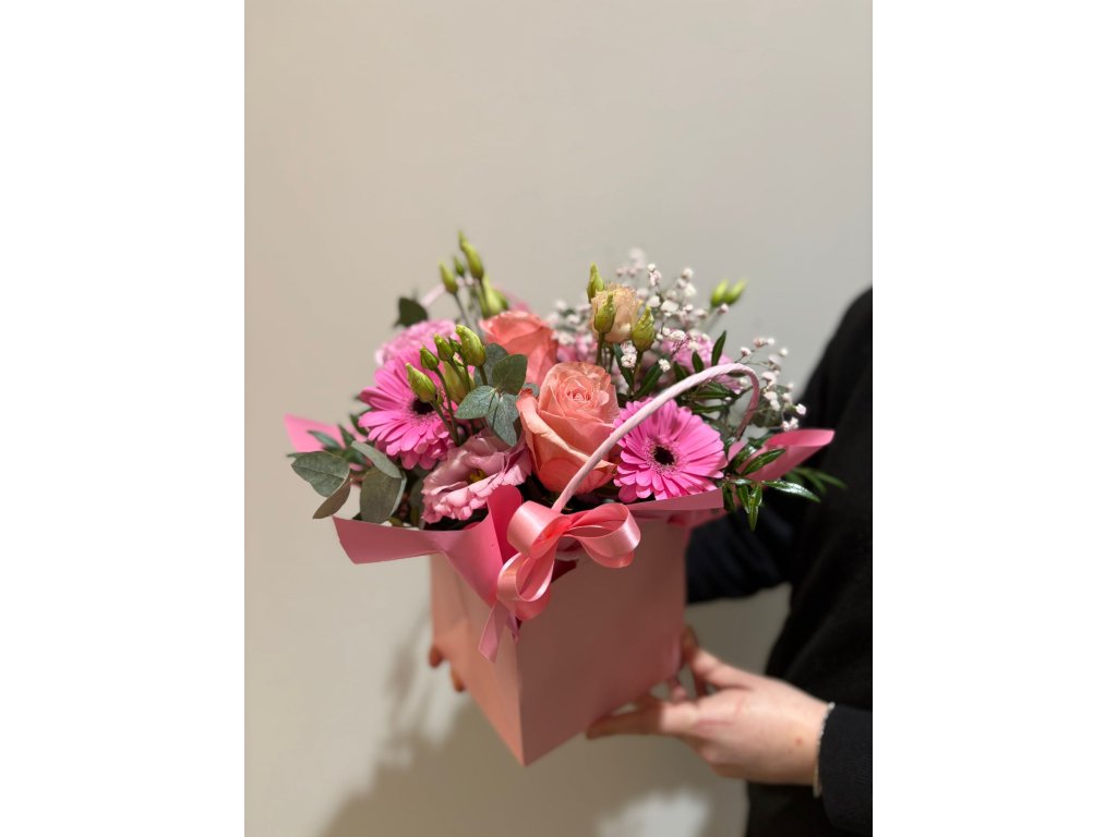 Mix květin v dárkovém balení, do poznámky můžete zvolit jiný odstín balení a květin.